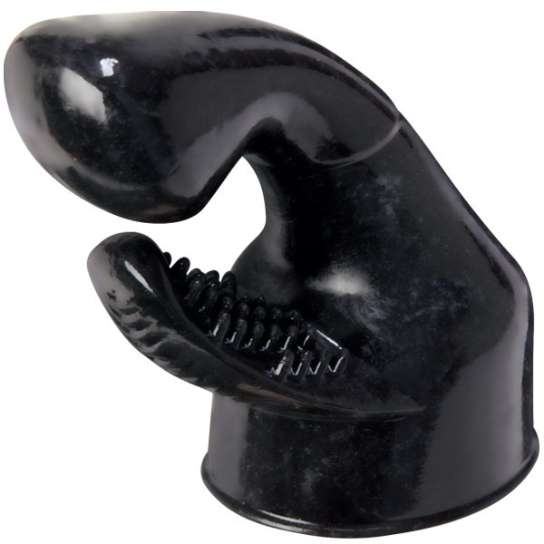 ●ヘッド径4.5〜5.2cmの電マに取付可能●肌に優しい柔軟エラストマー製●前のめり形状の二か所責めボディ●奥を絶妙に刺激するぷっくり先端●クリトリスに当たるブラシ型突起●ダークな雰囲気のブラック単色。