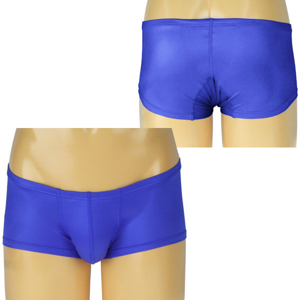 ●鮮やかなブルーカラー●フィット感抜群!ストレッチ素材●水に濡れても平気なウエット生地を使用●引き締まったボディを強調するボクサータイプ●股上が浅めのローライズ仕様●日本製・Mサイズ。