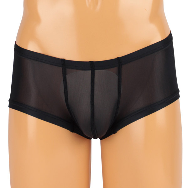 ●エロかっこよく決まるブラックカラー●極薄ストレッチ生地を使用●ボクサータイプ●フロントはゆったりめのデザインで締め付けすぎないのがポイント●メンズ用Mサイズ。