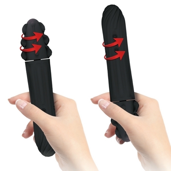 ●360度回転するスクリューモデル●上下どちらも使える双頭デザイン●手触り抜群の高品質シリコンボディ●大小イボ突起付きの凸凹回転ヘッド●ねじれたスジ入りのシンプルヘッド●両サイドに高性能モーターを内蔵●振動は12種、回転は4パターン搭載●丸洗い可能な生活防水で衛生的●タフなUSB充電式(専用コード付属)。