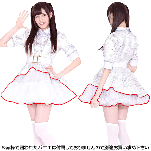 光り輝くボタニカル柄の襟付きワンピースに、太めの白ベルトでメリハリ付け!ふんわり広がるボリュームフリルのスカートがとってもキュートなアイドルコスプレです。