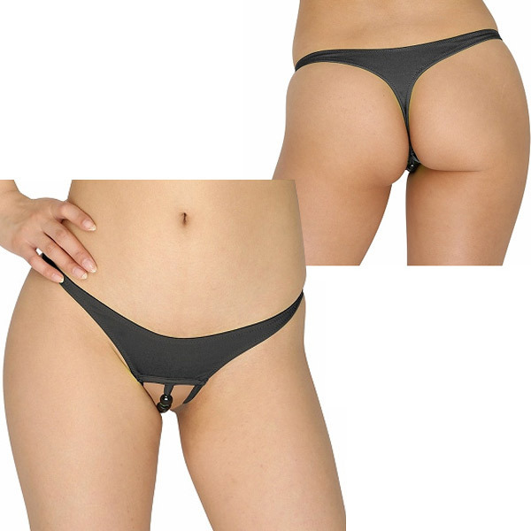クールなブラックカラーのシンプルデザインながら、Tバックでヒップラインをセクシーに強調!さらにオープンクロッチのセンターに大玉のビーズを配置した刺激的なレディースランジェリーです。