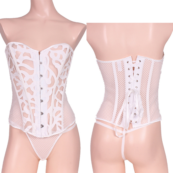透けてるウエスト&ベストメイクできる流行のスタイルアップコルセットとネットTバックセット。