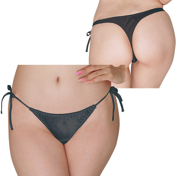 ショーツ > 光沢サテン脇紐Tバック ブラック