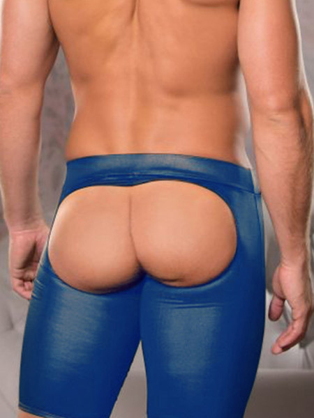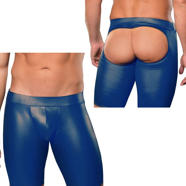 うしろ姿で誘惑男のロングボクサーパンツ ブルー