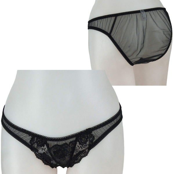 2Lサイズ レース&シースルー極薄フルバック ブラック