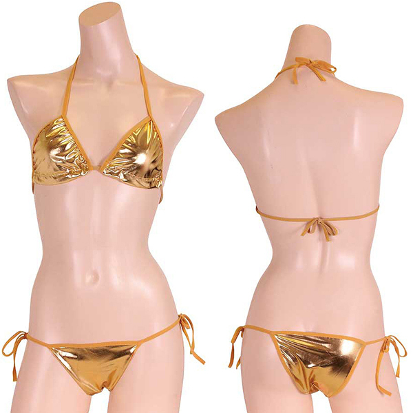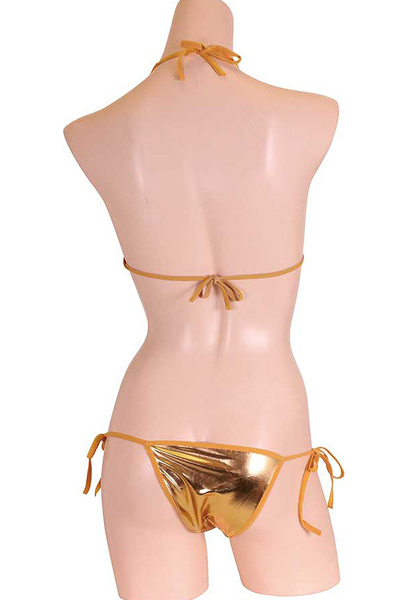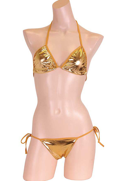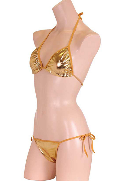太陽も羨む輝きで男の視線を独り占め♪金色カラーの華やかな紐ビキニを着れば、誰もが貴女に注目する!