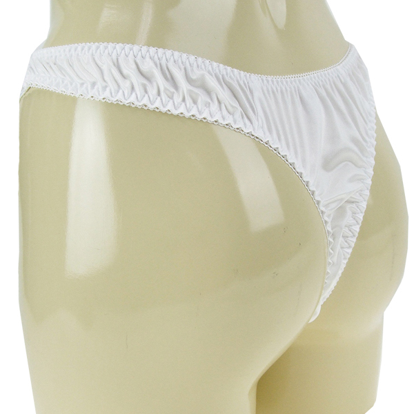 艶やかな光沢が美しいフェリカ生地と繊細なレース生地を組み合わせた日本製Tバック(白)。