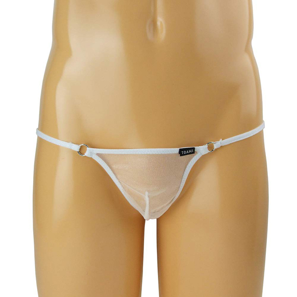 スケスケ感が大胆過激な日本製のメンズ用セクシーTバック(白)。