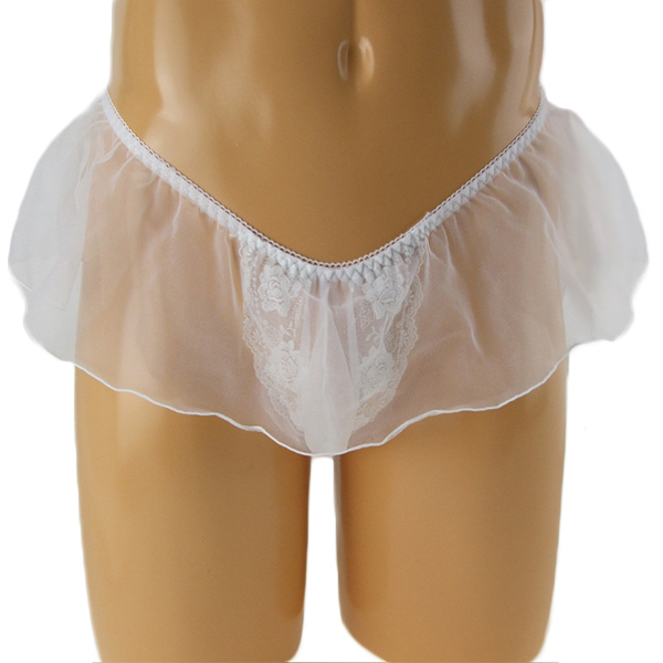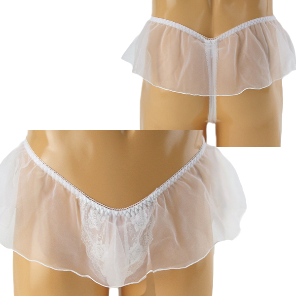 可愛いに憧れる男性に、レース刺繍が美しいスカート一体型のメンズ用Tバック(白)。