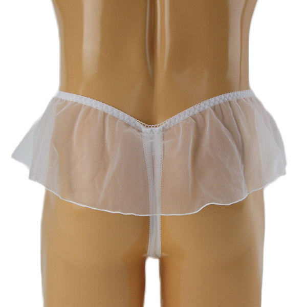 メンズ シースルースカート付きレース刺繍Tバック (ホワイト)