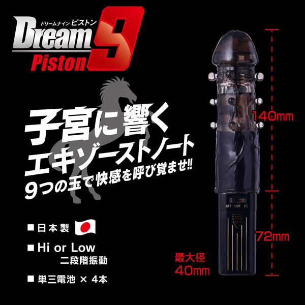 6Vのハイパワーで激しく突きまくる!9つのコリコリ玉×ピストン運動が自慢の電池式バイブ。