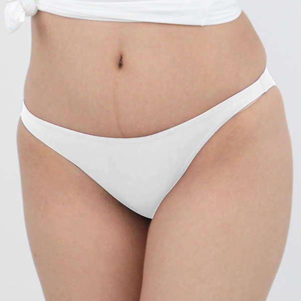 後ろ姿でサプライズ!お尻部分を丸く切り抜いた穴あき仕様の日本製Oバック(白)。