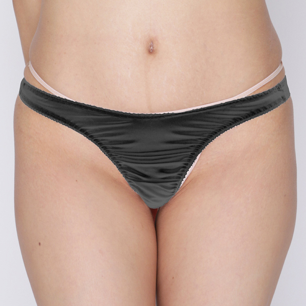 上品な光沢が美しいシンプル無地の日本製Tバック大きめサイズ(黒)。