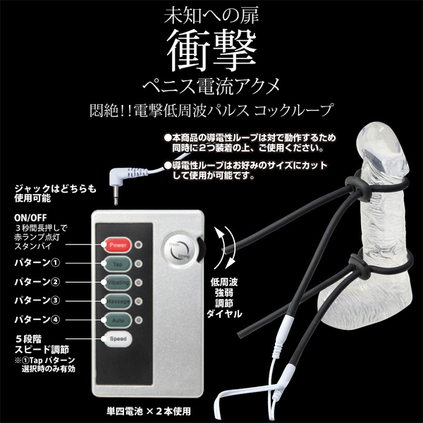 低周波パルスで悶絶電流責め!ペニスに電気を流して刺激するコックループ(電池式)。