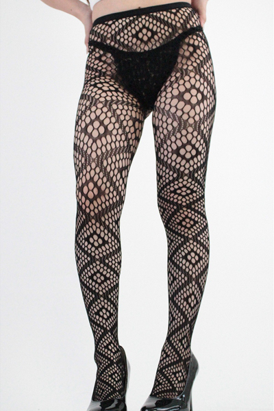 セクシーコーデのおともに!ダイヤ柄のストッキング(黒)。