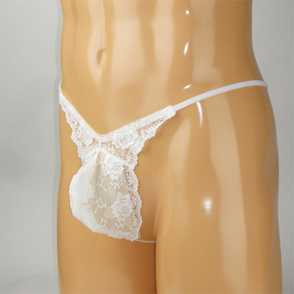 メンズ スケスケシースルーレース付き脇細Gスト ホワイト M