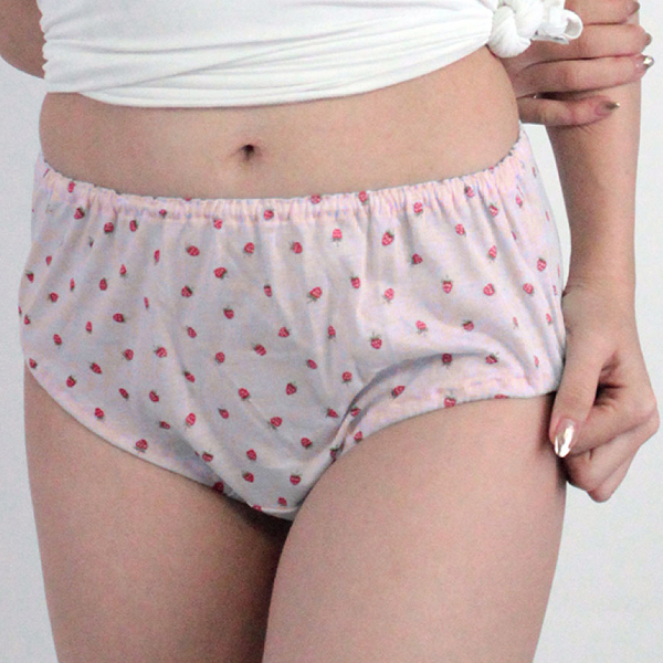 お肌に優しいコットン製でお尻全体を優しく包んでくれる可愛いらしさ満点の深履きショーツ。