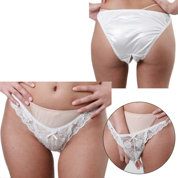 光沢×フラワーレースでエレガントに大胆アピール♪レース付きクロッチのフルバックショーツ。