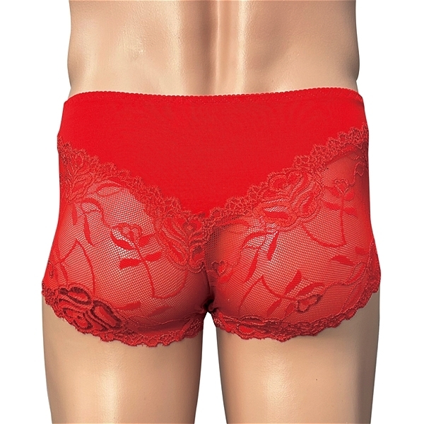 透けるレース素材がボディラインを美しく魅せ、イボ付ポールが男の象徴を勇ましく引き立てるメンズショーツ。