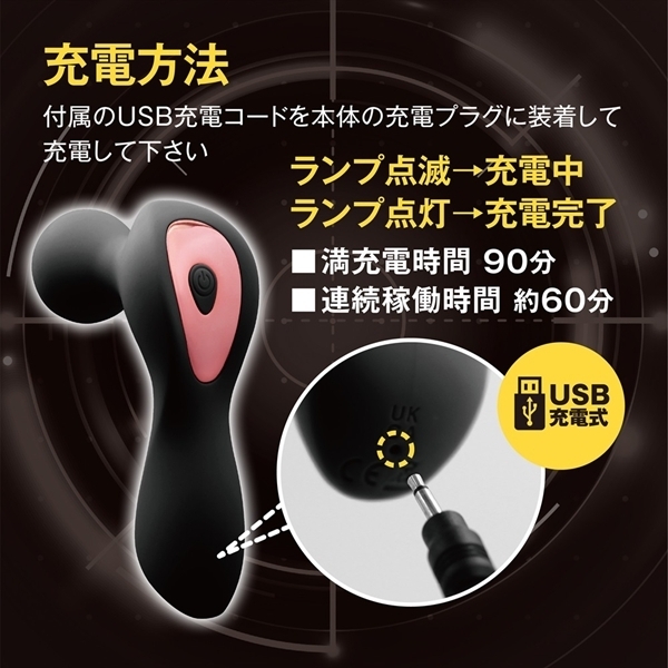 パッケージ:16.4×8.8×4.8cm 本体サイズ:11.5×6.6×3.7cm 【振動機能 USB充電式】 USB充電コード付属