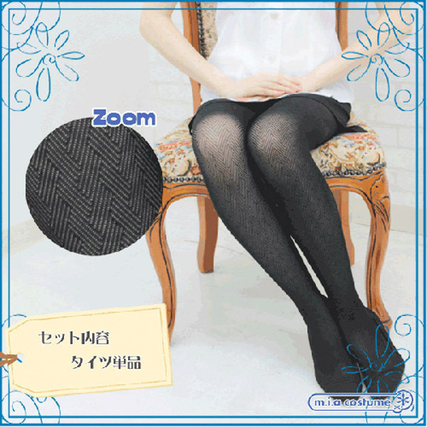 足元のオシャレをより一層惹き立てるヘリンボーン柄タイツ。
