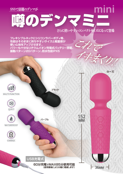 ネットや動画などで使われていてよく見る話題のデンマが、さらに使いやすいコンパクトサイズになって登場!フレキシブルネックにシリコンラバーボディ等、性能はそのままに、持ちやすいサイズと軽量感が使い心地をさらにアップさせました♪パワーも十分なリチウムイオン充電式バッテリーを搭載し、60分の充電で最大85分の使用が可能。