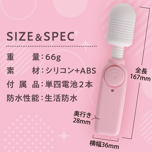 パッケージ:21.4×10.0×3.2cm 本体:16.7×3.6×2.8cm 重量:66g 単四電池2本
