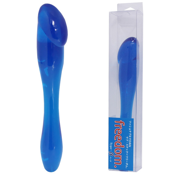 クリアブルーの「β(ベータ)」は、両端で形状が異なり、少し太目の流線型ストレート側と、ペニスを挿入する感覚を味わえる側の2種類。