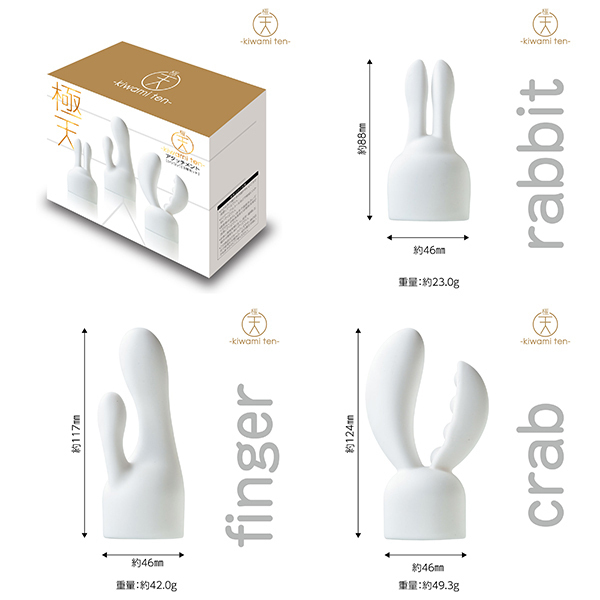 パッケージ:13.0×15.0×7.0cm 本体:finger(11.7×4.6cm)、rabbit(8.8×4.6cm)、crab(12.4×4.6cm) 重量:114g
