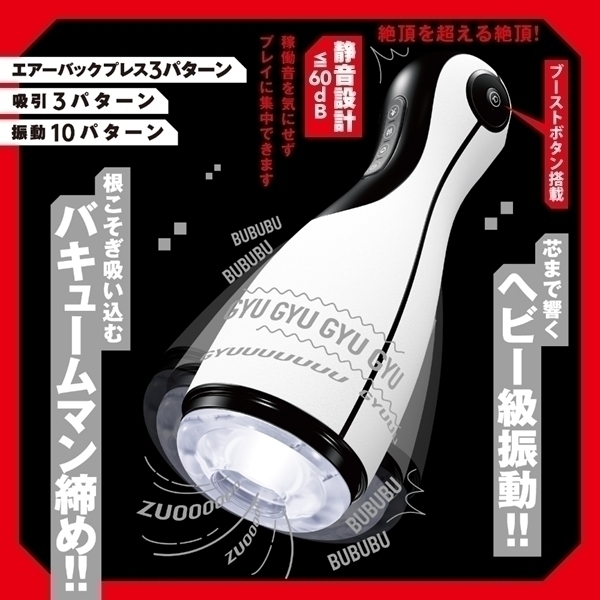 リアルな使用感を追求した電動オナホールです♪両サイドのエアーバックが膨らむことで心地よいフィット感を実現し、安定した使用をサポートします!吸引パターンや振動パターンが複数用意されており、好みに応じてカスタマイズ可能♪高品質エラストマー素材を使用し、安全性と使用感を重視しています!静音設計(≦60dB)により、稼働音を気にせず集中してリラックスタイムを楽しめます♪ブーストボタンが搭載されており、必要に応じて設定を調整できるのも魅力です!エアーバックプレスや振動の多様なパターンで、快適なひとときをサポートします♪